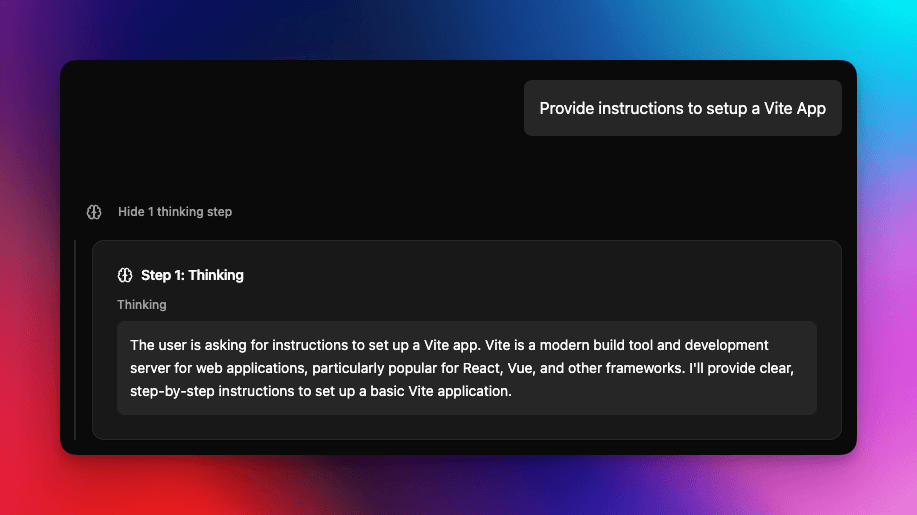 - We now show the LLM's thought process via a collapsible view above the response message